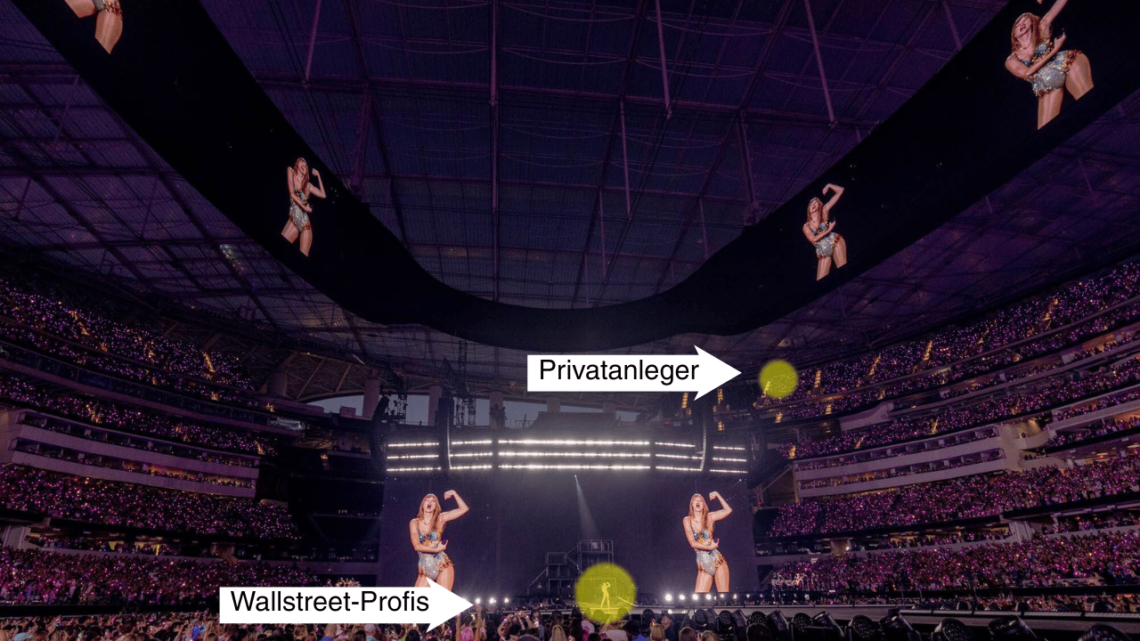 In der ersten Reihe: High-Frequency-Trader und Hedgefonds wie Citadel Securities. Dahinter: professionelle Asset-Manager mit Bloomberg-Terminals und ganzen Analystenteams. Und ganz oben, weit weg von der Action: der Privatanleger. Er sieht nur verschwommene Bruchstücke und glaubt trotzdem, er könne es mit den Profis aufnehmen.